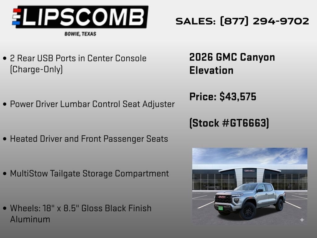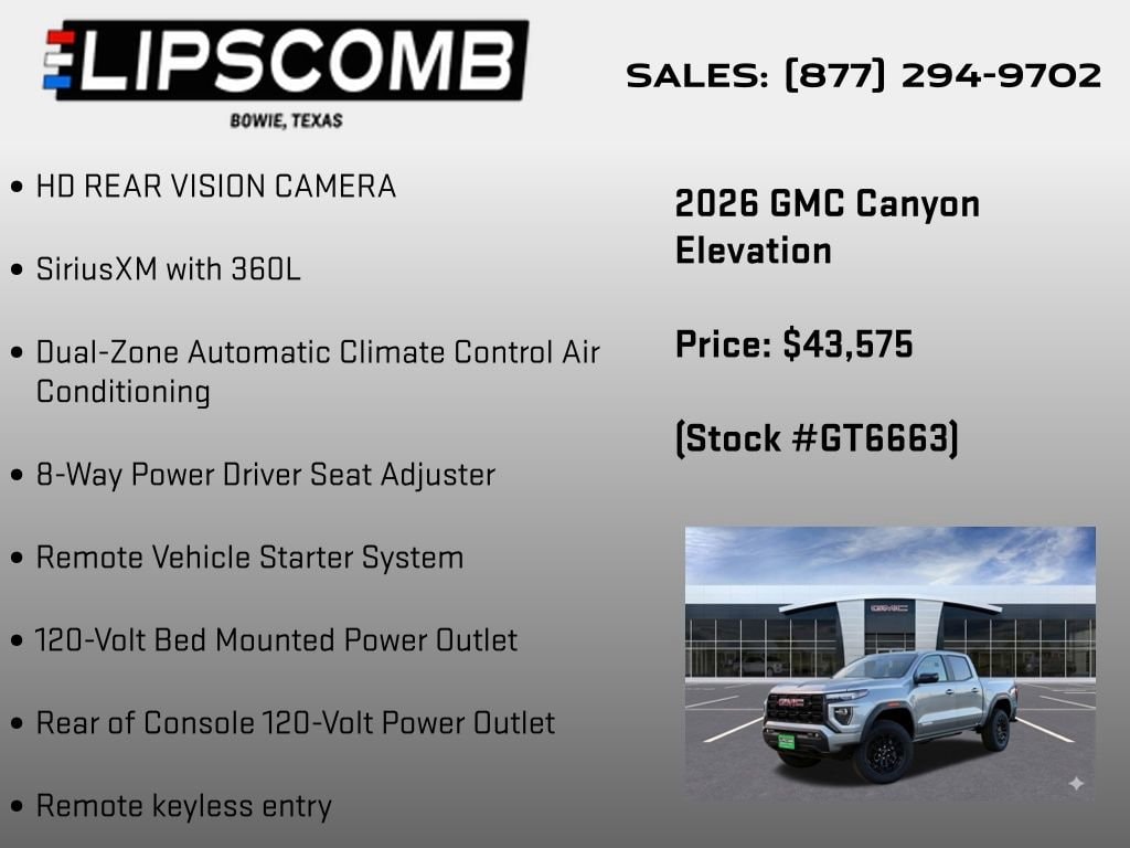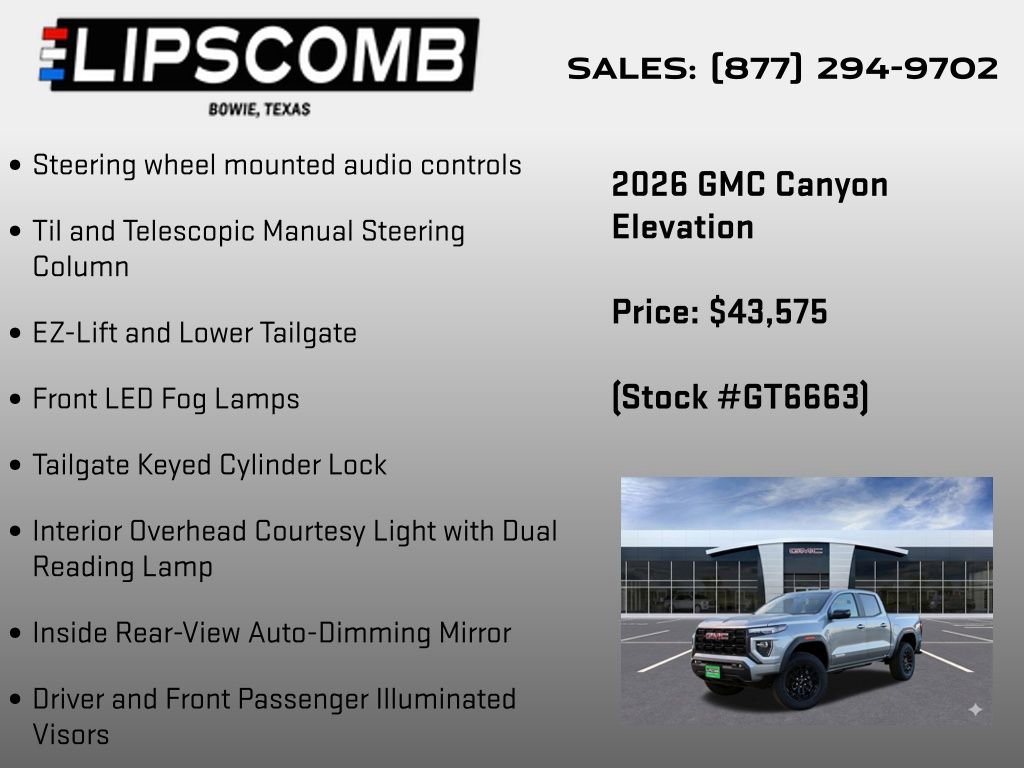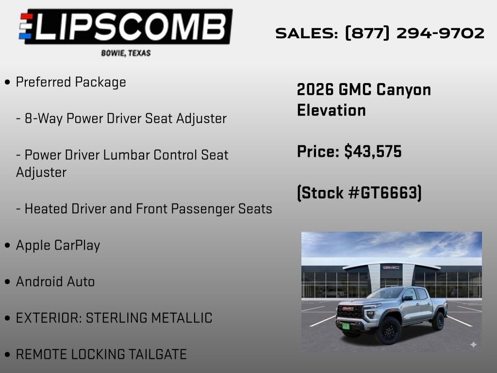Whether you're hauling gear, towing a trailer, or simply commuting in style, the 2026 GMC Canyon Elevation is the ultimate choice. Discover the difference that this exceptional vehicle can make in your daily driving. Visit our showroom today and experience the unparalleled performance and premium features of the Canyon Elevation for yourself.