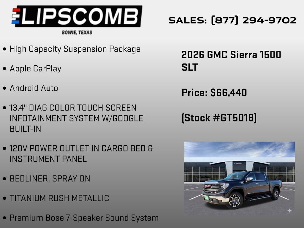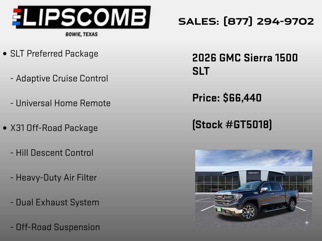 We invite you to visit our showroom and experience the 2026 GMC Sierra 1500 SLT for yourself. Our knowledgeable sales team is here to answer any questions you may have and help you discover the perfect vehicle to suit your lifestyle. Don't miss the opportunity to own this exceptional truck schedule a test drive today.