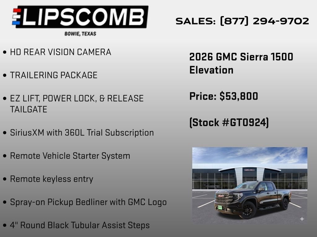 Discover the perfect balance of power, style, and technology in the 2026 GMC Sierra 1500 Elevation. This rugged and versatile truck is designed to exceed your expectations, offering a seamless blend of performance, comfort, and advanced features that will elevate your driving experience to new heights.