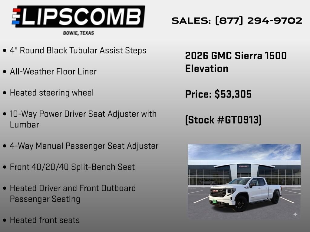 Elevate your driving experience with the exceptional 2026 GMC Sierra 1500 Elevation. This powerful and versatile truck is designed to conquer any terrain, whether you're tackling the daily commute or embarking on your next outdoor adventure.