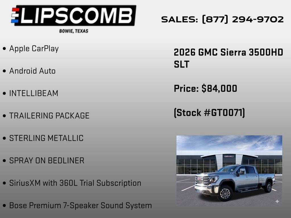 Discover the ultimate in power, capability, and luxury with the 2026 GMC Sierra 3500HD SLT. This exceptional heavy-duty truck is a true workhorse, engineered to handle even the toughest jobs with ease.