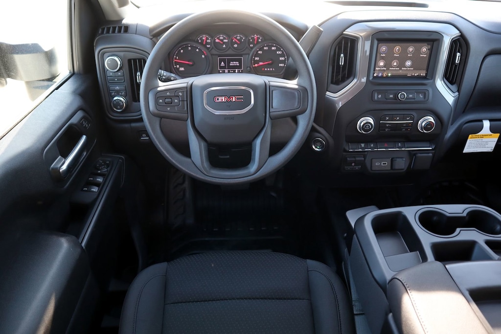 Step inside the Sierra 3500HD Pro and experience the perfect blend of rugged capability and refined comfort. With features like air conditioning, an electric rear-window defogger, and a split-bench front seat, you'll enjoy a premium driving experience no matter the task at hand.