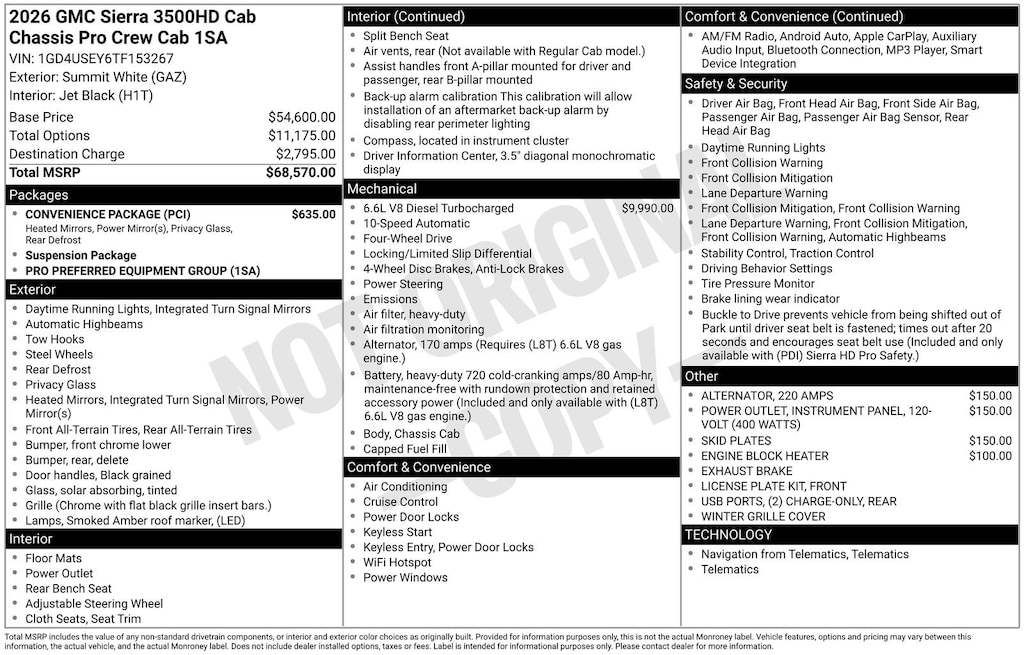 This 2026 GMC Sierra 3500HD Pro is a true testament to the brand's commitment to quality, performance, and innovation. With its uncompromising capability, advanced technology, and refined comfort, it's the ultimate heavy-duty truck for those who demand the best. Experience the power and versatility of the Sierra 3500HD Pro for yourself visit our showroom today and let us help you find the perfect truck to meet your needs.