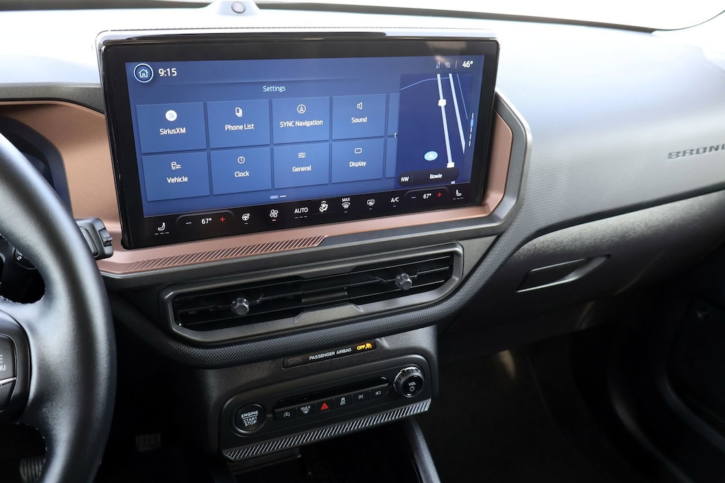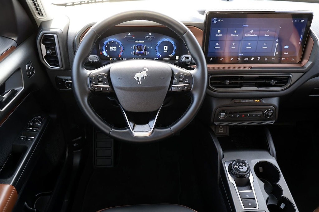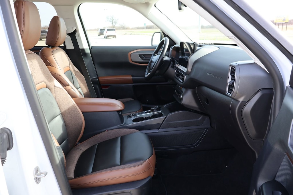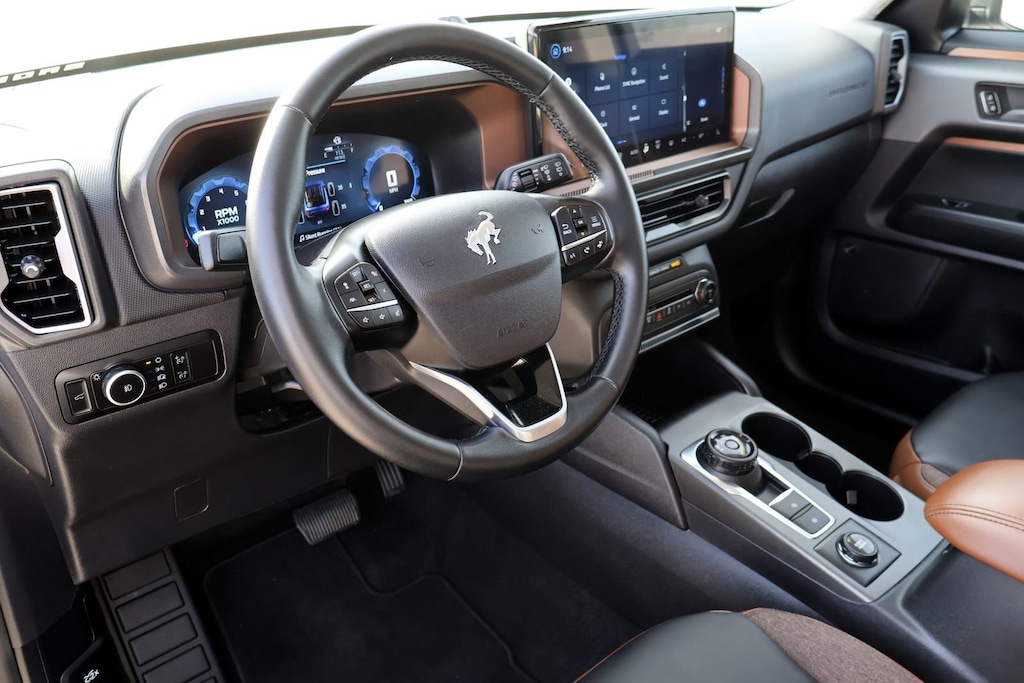 I got a 2025 Big Bend with the black diamond off road package. The steel modular front and rear in combination with bush guard gives this year model. A very aggressive off road look. With the ability to easily mount accessories and power them with the factory installed auxiliary switches. Hitch receiver seamlessly mounted into the rear steel bumper flanked by some very chunky recovery points. The upgraded aluminum rims wrapped with Continental all-terrains. It make this the most capable bronco sport yet. The interior of the 2025 has been updated with a new 13 inch touchscreen with Android Auto and apple car play. The lines of the dash flow elegantly from the new infotainment screen to the new all digital 12 inch gauge chaster. Toggling through the different modes on the gauge chaster is very intuitive, and all the displays are laid out very cleanly. Moving from gauge chaster the center storage cubby just below the infotainment screen there is a wireless charger and USB/ USB-c ports. The passenger side of that same cubby gets a handle and a matching one on the roof just in case the driver bucks a little too much. The passenger also gets a mesh storage area. That leads us to the fact this vehicle has tons of storage options all throughout. You have pockets on the sides of the front two seat big enough for the latest new phones. Very generous door storage on all four doors plus huge glove box and center console with 12 volt outlet. The back side of the center console has air vents and another 12 volt outlet plus a 110 outlet. Now getting to the cargo area it is massive for a crossover SUV. With off road package you get a cargo management system and a very nice rubber mat. Under that there is a full size tire plus scissor jack and funnel to use with the capless filler system. On the liftgate there isa pair of very bright led lights turned on with a switch in the cargo area. This feature packed vehicle has tons awesome gadgets and hidden a little homages I spend all day just talk that. At the end of the day it is car. So how does it drive. It is wonderful, the steering and pedal response is beautiful. Rides very smooth and little to no road noise going down the highway. The active cruise control and co-pilot 360 have been very handy. The car literally drives itself most of the time. There is not enough good things I could same about this car. I love it and you pick one too. You will see what I mean. - 5.0